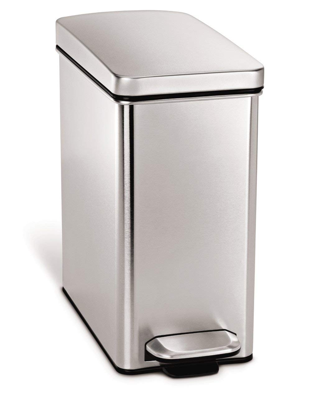 simplehuman 10 Liter/2.6 Gallon Stainless Steel Bathroom Slim Profile Trash Can, Brushed Stainless Steel – Link