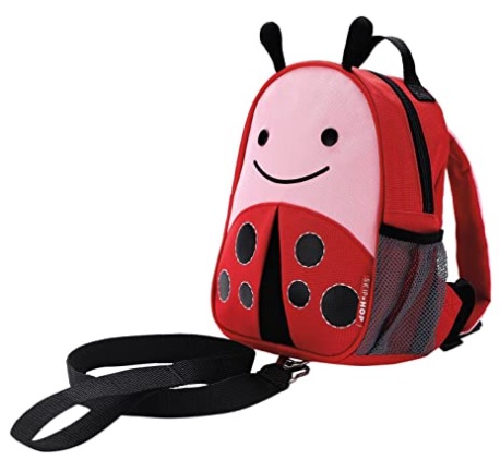 - Roomy kids backpack with leash can fit a light change of clothes, a few diapers, travel wipes and a small snack.
