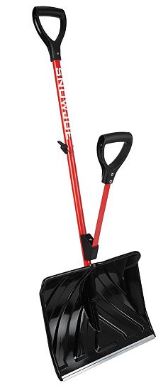 “When it comes time to tackle winter’s worst weather, the Snow Joe Shovelution shovel will help you clear the snow in a way that’s smarter–not harder–thanks to its spring-loaded handle. This handle moves the leverage from the top to the lower hand. From Snow Joe.”