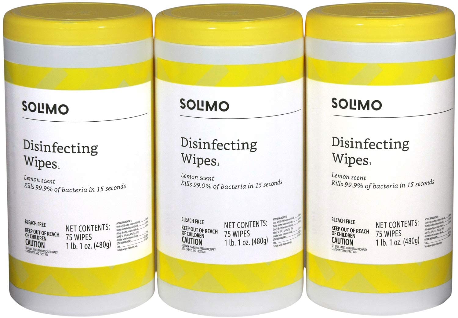 - Three 75-count canisters of Lemon Scent disinfecting wipes; 225 disinfecting wipes total