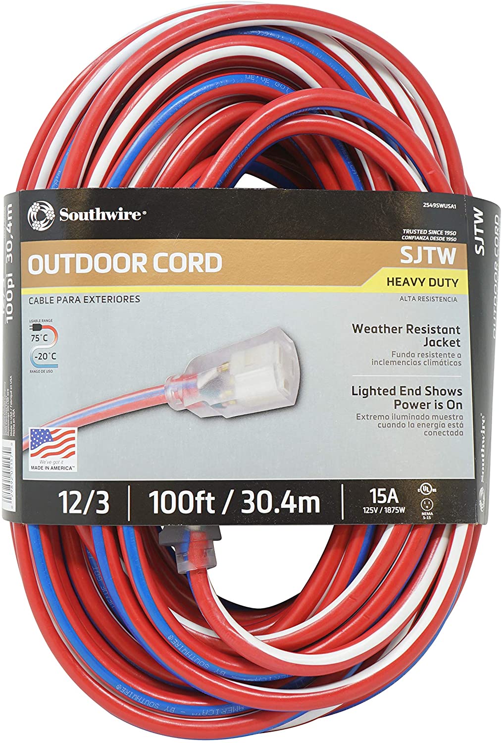 - MADE IN AMERICA : Display AMERICA’S COLORS on the jobsite with this patriotic striped contractor grade extension cord