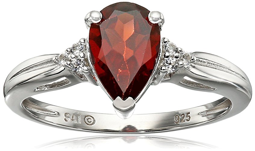 Sterling Silver Garnet and Lab White Sapphire Pear Shape Ring, Size 7 – Link