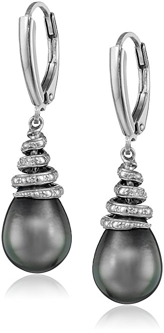 Sterling Silver Tahitian Cultured Black Pearl Diamond Accent Dangle Earrings – Link