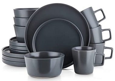 - One-piece dinnerware set – stoneware is hip, cool and trendy. Especially in a fashionable Gray Matte. These sets of dishes make a statement.