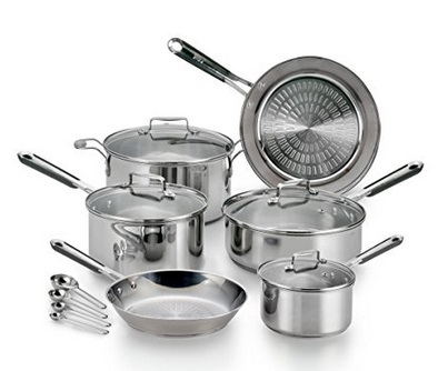 T-fal 14-Piece Performa Pro Stainless Steel Dishwasher Safe Oven Safe Cookware Set – Link