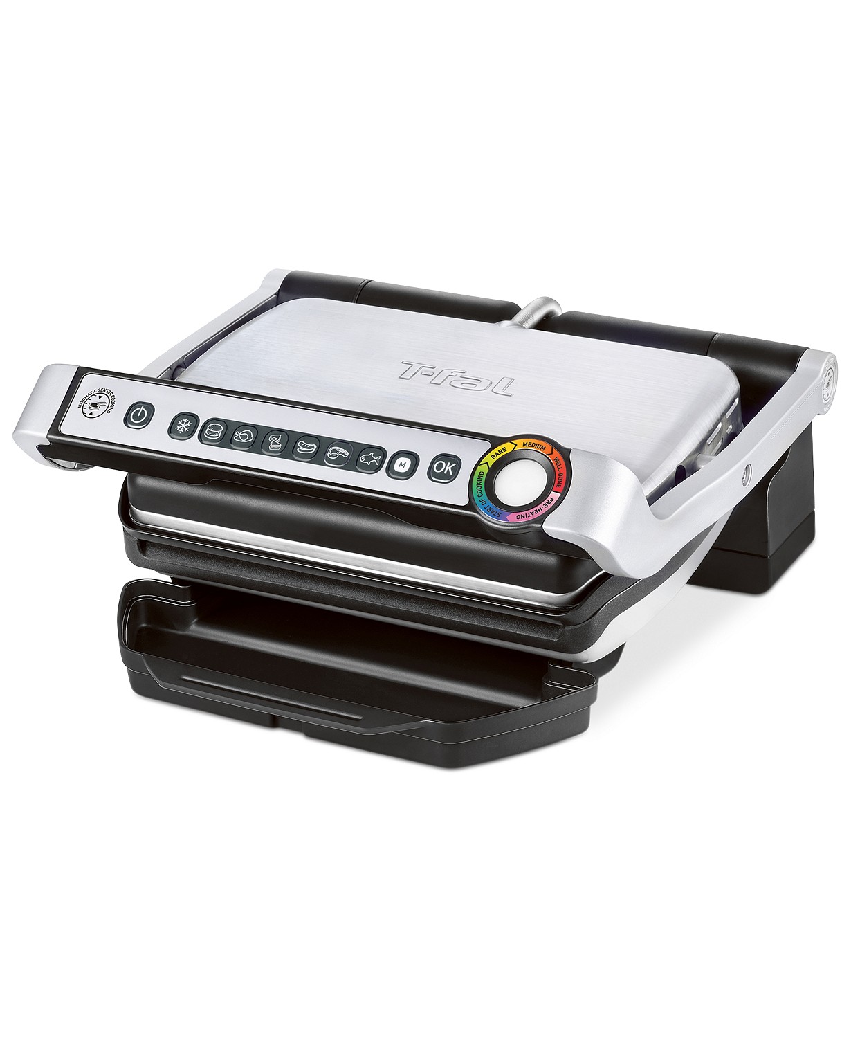 - Removable, dishwasher-safe drip tray catches fat released from angled design