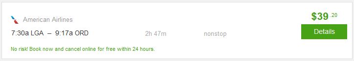 You can currently snag flights on select dates from New York to Chicago, or vice versa from Chicago to New York for just $39.20 – $44.20 each way! Flights are on either JetBlue, United or American airlines, depending on the date.