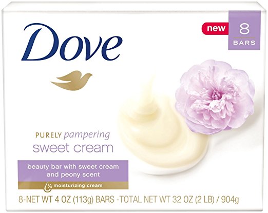 • Dove Purely Pampering Sweet Cream Beauty Bar with 1/4 moisturizing cream is infused with the warm, enticing fragrance of sweet cream and peony that delights your senses as it washes away the day.