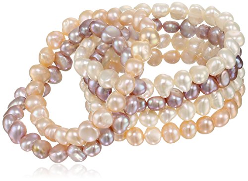 - Set of six stretch pearl strands featuring high-luster freshwater cultured pearls in natural potato shape