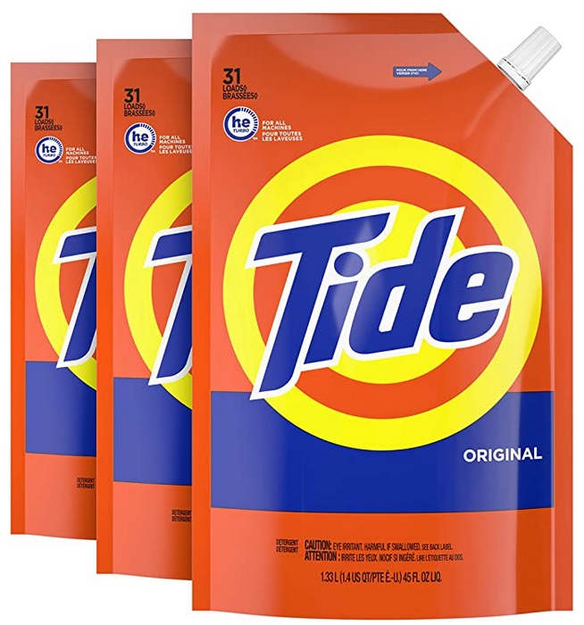 - A convenient, easy to use pouch that uses 60% less packaging and lets you reuse your empty Tide Bottle. (Weight vs 50 oz. Bottle)
