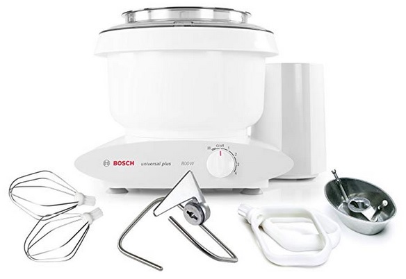 - Bundle and Save – This package adds Cookie Paddles, Cake Paddles, and Bowl Scraper to the Bosch Mixer that already comes with a dough hook and wire whips.