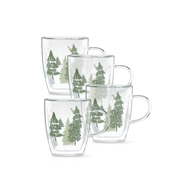 - Balsam Lane™ 4-piece Double-Walled Tempered Glass Mug Set