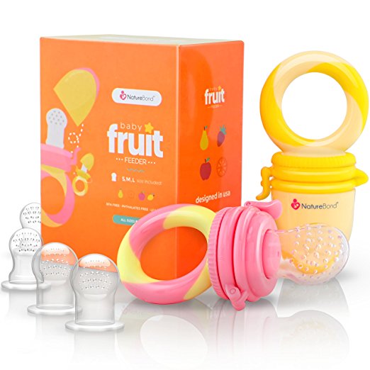 - NatureBond Baby Fruit Feeders and Teethers are designed in candy-like colors that stimulate baby’s appetite for consumption of natural nutrients from fruits and vegetables. It is also a safe way to introduce our little ones to solid food while they go through weaning and teething phase. The All-IN-1 feeder can also soothe baby’s teething discomfort by massaging the gums through chewing.
