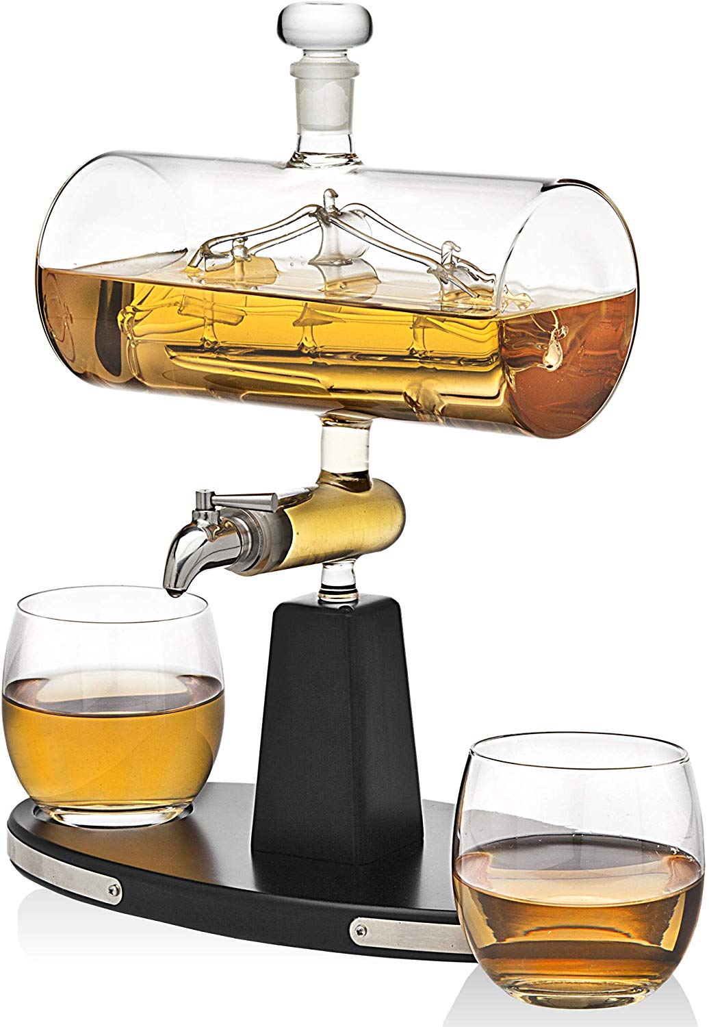 - Godinger Whiskey Decanter Dispenser with 2 Whisky Tumbler Glasses – for Liquor, Scotch, Bourbon, Vodka: $59.97