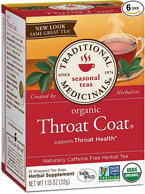 - Traditional Medicinals Organic Throat Coat Seasonal Tea, 16 Tea Bags (Pack of 6): $10.71-$11.97 with Subscribe & Save