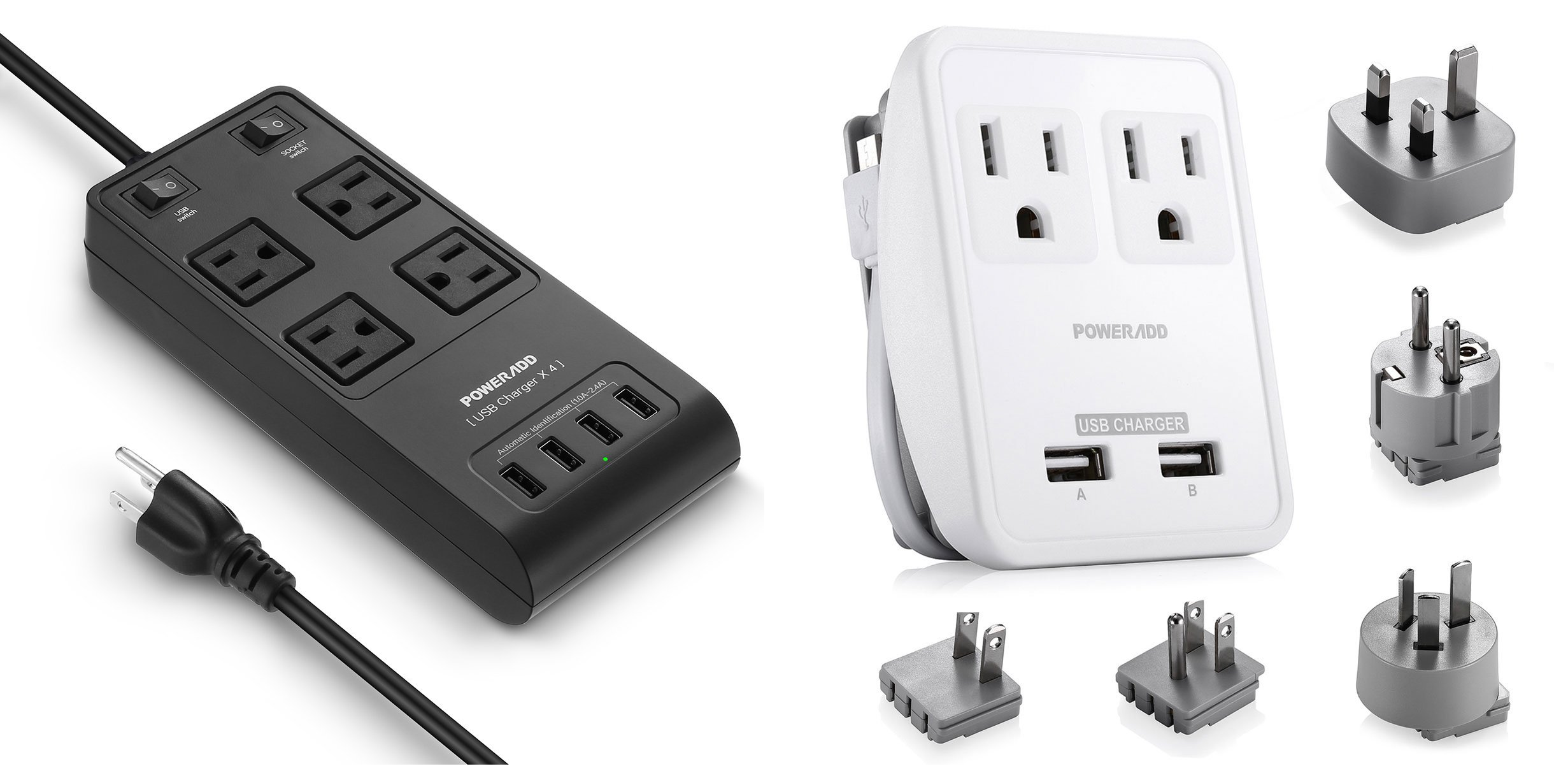 Today Only: Up To 27% Off Poweradd Travel Charger and Surge Protector Posted on August 11, 2017 by Jeri Update: Deal over. This deal is valid today Friday August 11 only. Poweradd World International Travel Adapter Kits – Dual Smart USB Ports + 2 AC Outlets Wall Charger with UK/US/AU/EU/JP Adapters for Laptop, Cell Phones & Other Dual Voltage Devices: $18.99 Poweradd Surge Protector Power Strip (4-Outlets & 4-Ports USB) with UK/AU/EU Adapters, 2500W: $19.49 Share the love: