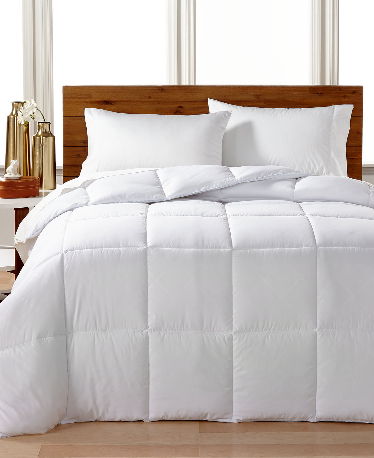 “Give any room a clean, classic feel with the super-soft peached shells and pillowy Supraloft® down-alternative fill of these Monogram comforters from Tommy Hilfiger, featuring understated lattice patterns with logo accents.”