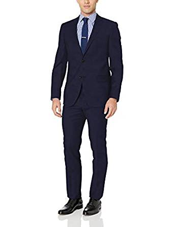 - Tommy Hilfiger Men’s Slim Fit Performance Suit with Stretch – Navy Blue
