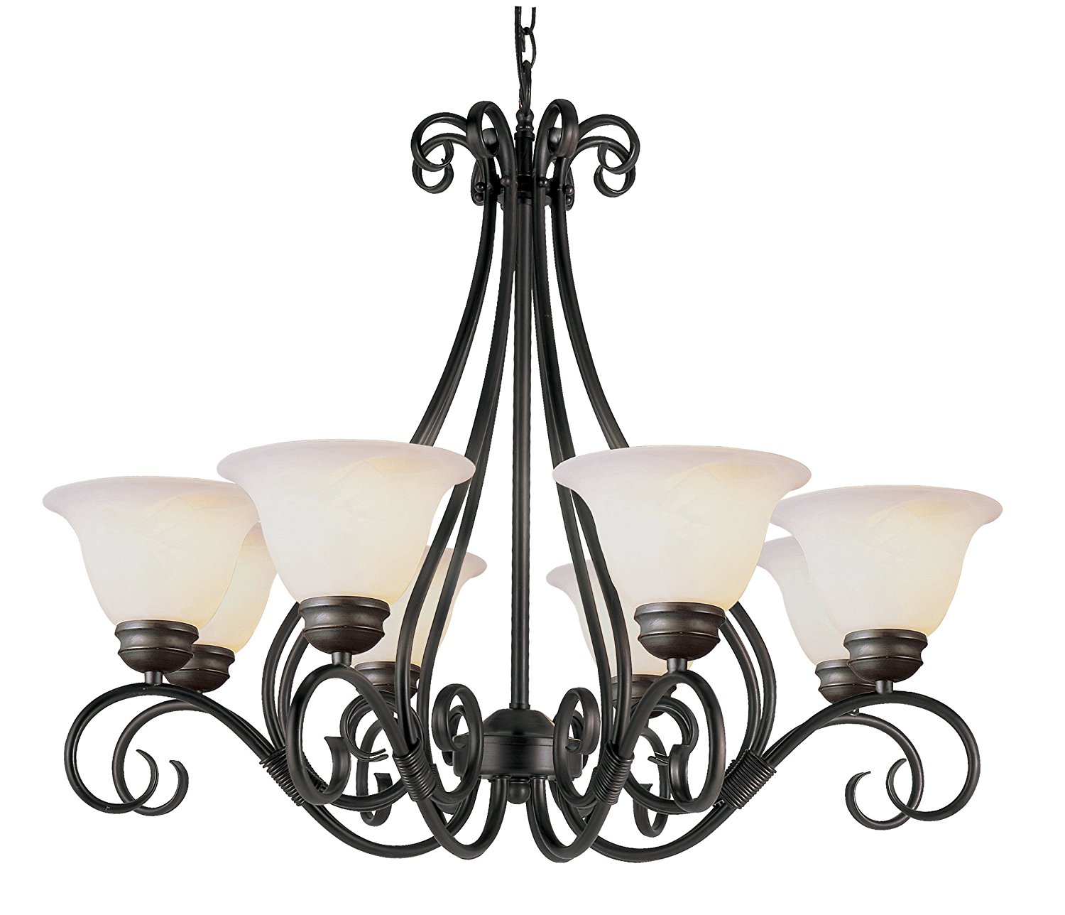 - 8 light single Tier chandelier Comes with 8′ chain and wire