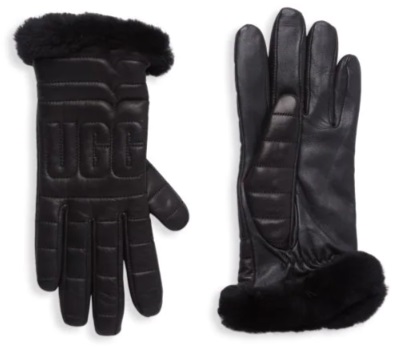 - Supple leather gloves enhanced with logo quilting and soft shearling cuffs.
