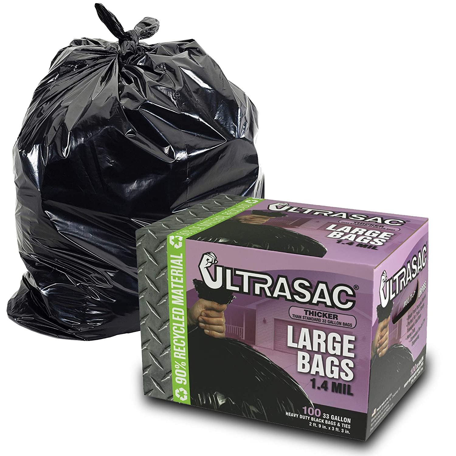 UltraSac 33 Gallon Trash Bags – (Huge 100 Pack/w Ties) – Link