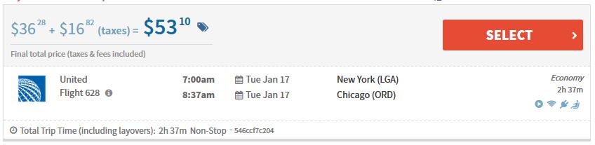 There are currently flights available in January and February, from New York to Chicago, or vice versa, from Chicago to New York, for $53.10 each way, on United Airlines.