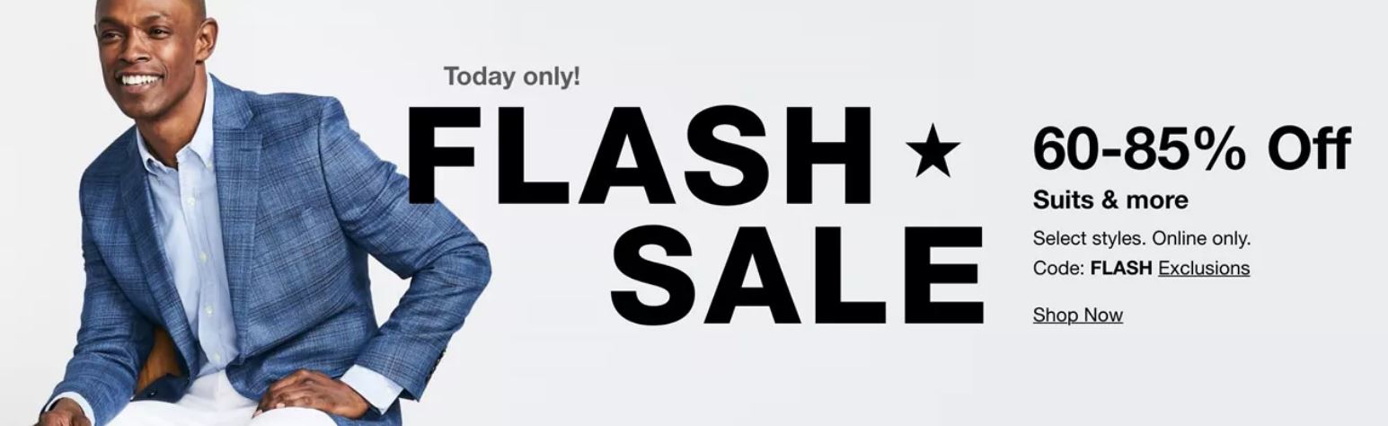 Today only, Macy’s is having a flash sale on Men’s, Suits, Shirts, Shoes, and more!