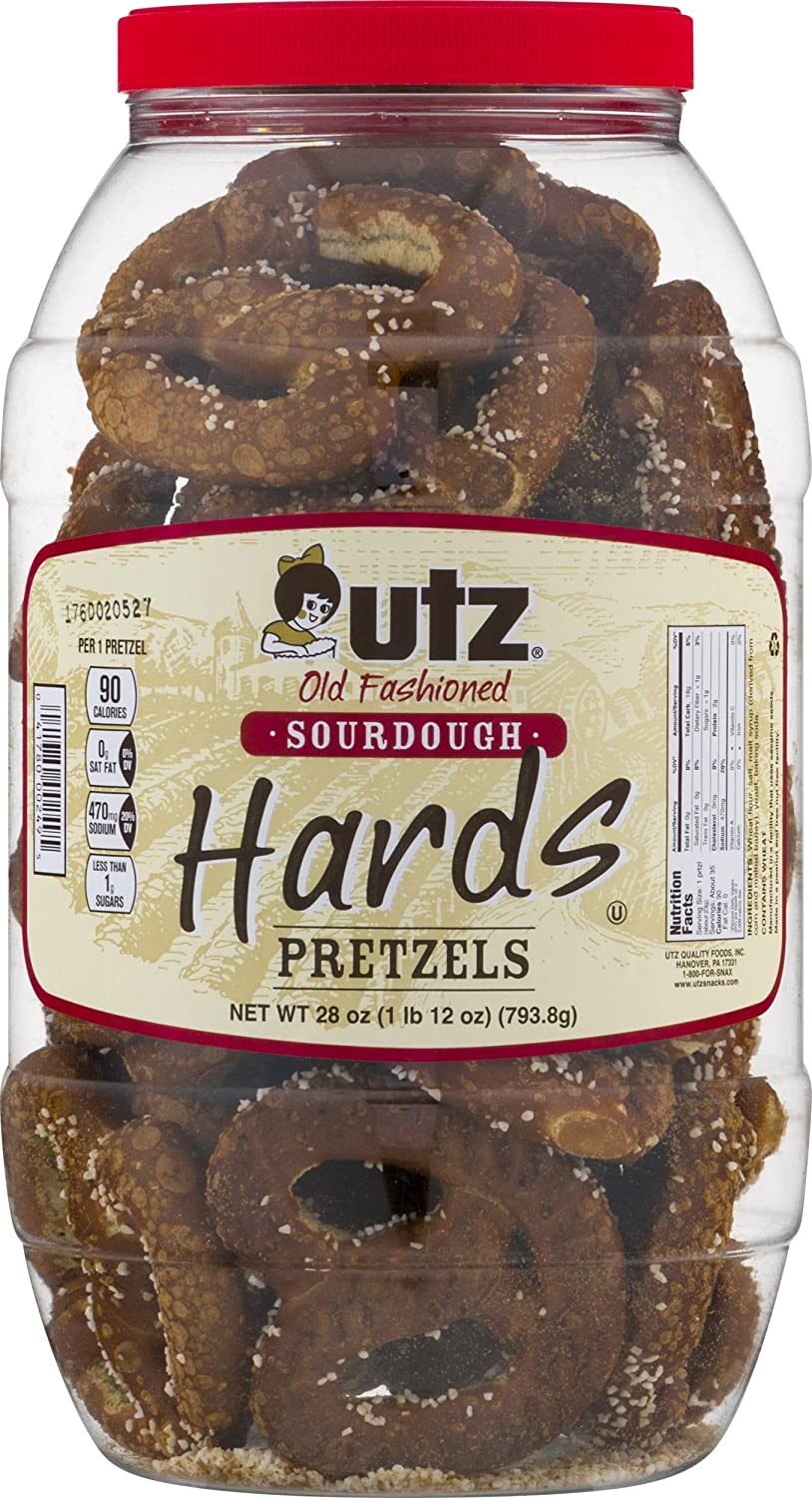 - THICK AND CRUNCHY: Utz Old Fashioned Sourdough Hard Pretzels deliver on crunch, taste and size! With just the right amount of salt, these pretzels are made with aged sourdough, individually twisted and perfectly baked for a delicious, crunchy snack.
