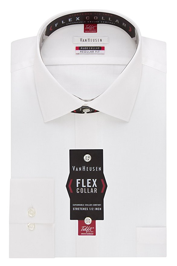 Van Heusen Men’s Flex Collar Regular Fit Solid Spread Collar Dress Shirt – Link