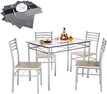 VECELO Dining Table with 4 Chairs [4 Placemats Included-] Silver