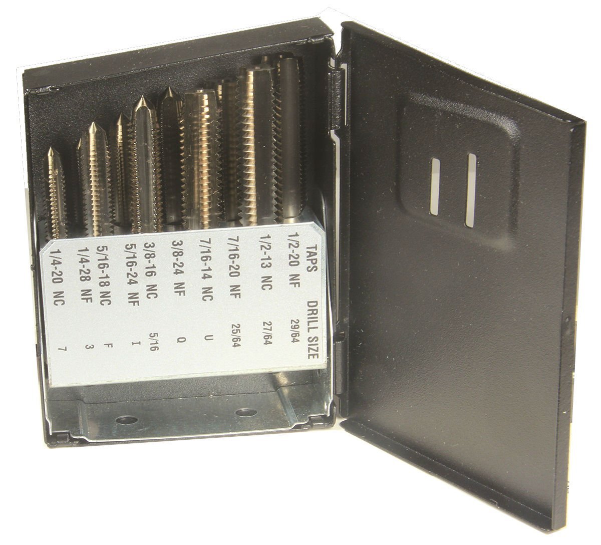 - Contains: 1/4-20, 5/16-18, 3/8-16, 7/16-14, 1/2-13, 1/4-28, 5/16-24, 3/8-24, 7/16-20, 1/2-20