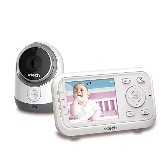 VTech Video Monitor with 2.8″ Auto On Screen, Invisible LED Infrared Night Vision, 2-Way Talk, Sound & Temperature Alert, Lullabies – Link