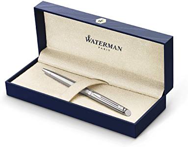 Waterman Hémisphère Ballpoint Pen, Stainless Steel with Chrome Trim, Medium Point with Blue Ink Cartridge, Gift Box – Link