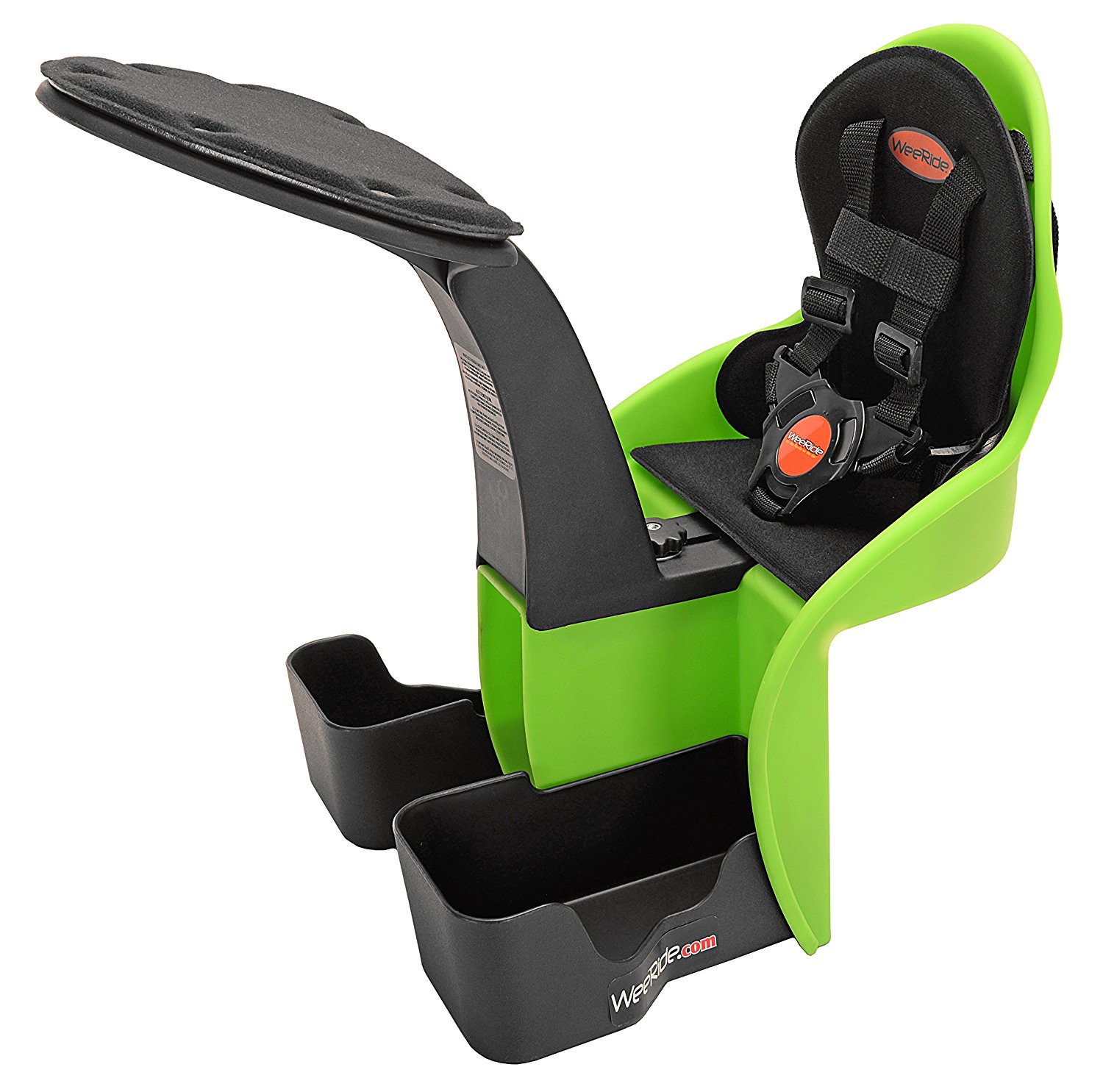 - Center-mounted child bike seat with safe, comfortable front-row view