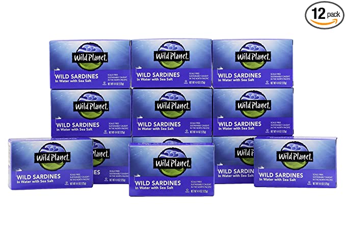 Wild Planet Wild Sardines in Water with Sea Salt, Keto and Paleo, 4.4 Ounce (Pack of 12) – Link