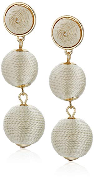 Women’s Double Ball Post Drop Earrings, Ivory – Link