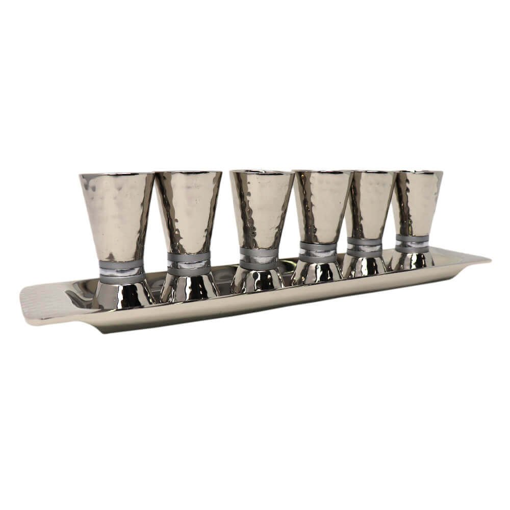 Yair Emanuel Hammered Nickel Cone Shaped Set of 6 Liquor Cups – Silver Rings – Link
