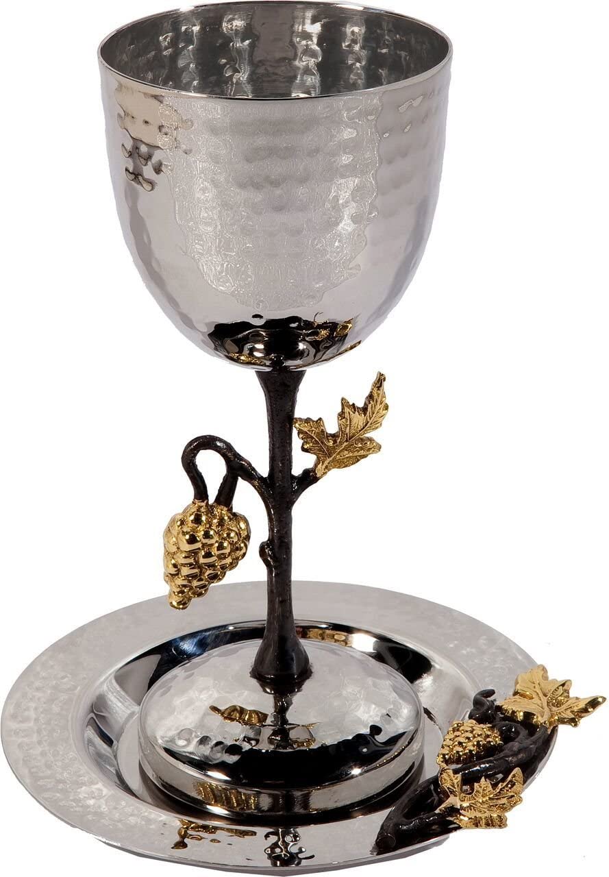 Yair Emanuel Tall Hammered Kiddush Cup with Grape Branch – Link