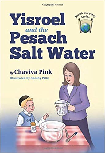 “Whilst helping Mommy make salt water for the Seder, Yisroel is fascinated to discover what happens when salt is mixed in water.