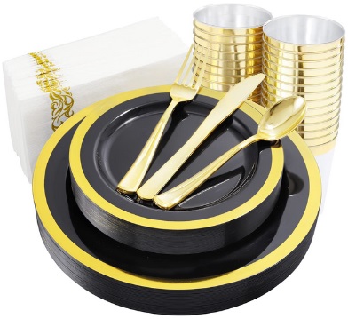 - 【PREMIUM QUALITY】:We use durable materials to manufacture our black disposable plates,and hope that customers who use our products are assured.These gold disposable plates are made of 100% food grade, non-toxic, BPA-free plastic!