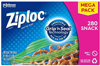 - Pack includes 280 Ziploc brand Snack Bags made of durable and long lasting BPA-free plastic Product not formulated with BPA (Bisphenol A)